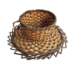 Vintage Super Rare Handmade Elephant Ear Wicker Art Tray Basket Great Condition