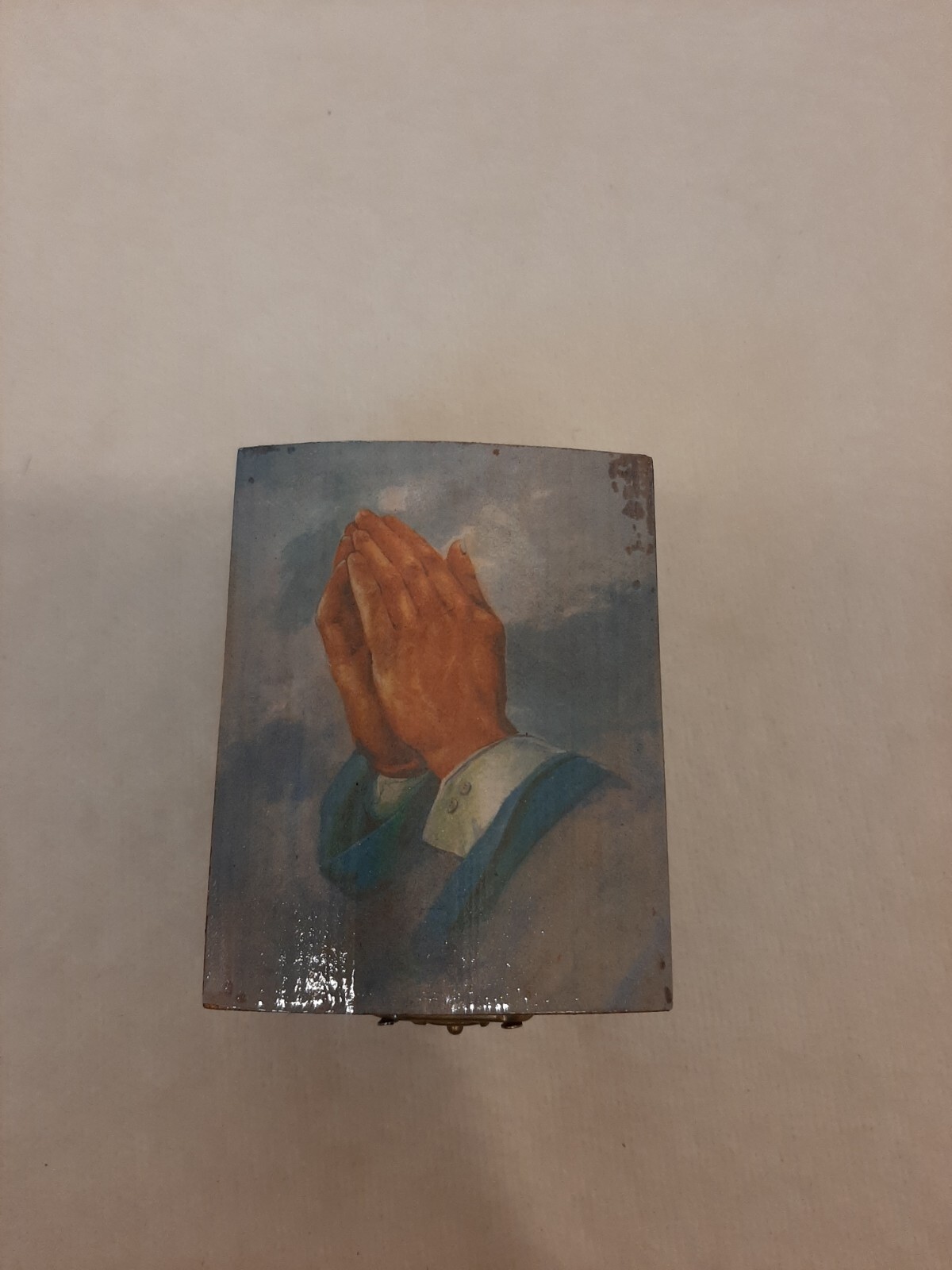 Vintage Wood Trinket Jewelry Wood Toned Praying Hands Friendly Home Parties In good pre-owned condition may show signs of wear from use/handling/storage/display. Please view all pics for condition/details/flaws/issues. SOLD AS IS There is/maybe marks/spots/dirt/debris please see photos 1-24, there is/maybe paint loss/sticker loss please see photos 1-24, there is lite discoloration please see photos 1-24, there are surface scratches to item please see photos 1-24, please see all photos for condition/issues/details. III