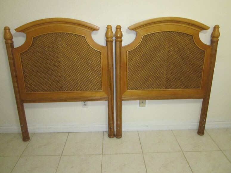 Add a touch of vintage charm to your bedroom with this set of two twin headboards. Crafted from high-quality wood and featuring a unique woven insert design, these headboards are perfect for giving your space a cozy and rustic feel. Measuring at a comfortable twin size, they are ideal for use with a variety of beds and frames. The headboards are perfect for those looking to add a bit of personality to their bedroom without sacrificing style or comfort. The set includes everything you need to complete your headboard installation, and the woven insert design adds a touch of elegance and texture that is sure to impress. So why wait? Upgrade your bedroom today with this beautiful set of vintage twin headboards! Twin Headboard Vintage Wood Woven Insert Set of 2 SHIPPING IS BASED ON YOUR LOCATION Style: Vintage Mid Century Color: Honey Dimensions: 39" W x 49" H x 21/2 " D 4-6 Week Delivery Please See Photos Shipping Is Not Included In The Price Please Let Me Know If You Need A Shipping Quote Local Pick Up Available Note: This Item Is Pre-Owned If You Like What You See Check Out My Other Items! Thank You For Shopping At My Store!