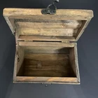 Welcome to Phantom Fables Vintage wood and metal (brass?j storage box Wood box with metal panels. Metal handle and latch. Interior is all wood. Small spot with tape residue on the bottom inside. Natural wear and patina. Otherwise in very good condition. Measurements take at widest point: Height-5 inches Width-4.5 inches Length-7 inches