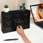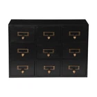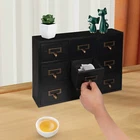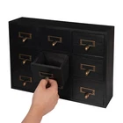 Apothecary Chest Cabinet, Wooden Medicine Drawer Organizer Box With 9 Drawer Description Cleanness and tidiness are a good attitude towards life and will put you and your family in a good mood, our 9-drawer storage cabinet is made of high-quality material, has sufficient storage space, has a beautiful and practical design, and allows you to neatly and efficiently organize your belongings, and makes you feel organized and relaxed. Say goodbye to a cluttered desk and enjoy a neater, more efficient life! Key Features Sturdy and Durable: It is made of high-quality wood and metal with a painting treatment, which is eco-friendly, odorless, anti-corrosion and rust-resistant , ensuring its beauty and a long time use. Excellent Organizer: This set of 9 drawers can sort and store data cables, kinds of medicinal herbs, and other daily essentials to create a cleaner, tidier office and home environment. Meanwhile, the top platform allows you to place some keys, and chargers to make full use of your space. Exquisite and Rustic: The black color scheme combines a minimalist design with clear wood grains to create a minimalist aesthetic and reveal a strong retro charm permeated with the flavor of time precipitation. Stable Construction: The thickened material and rectangular structure give it excellent stability, meeting your needs for storing various items without tipping o ver. Effortless Clean: Thanks to its smooth surface, simple construction, and closed dustproof design, you can wipe it clean with a damp rag. Installation-free : What you receive will be an already assembled product, so you can use it directly, which is very convenient and time-saving. Protective Package: We use bubble bags to package our product, designed to maximize protection from damage during shipping. Ideal Gift: Thanks to its practicality, it will make a fine gift for family, friends, and loved ones on Christmas, Father's Day, Mother's Day, birthdays, anniversaries, and holidays. Details Rounded Corners: The rounded edges are burr-free , which is comfortable to touch a nd can care for your skin. Metal Handles: Ergonomically designed metal handles allow you to pull drawer doors open or close with ease. Tag Slot: It allows you to place labels for the items, making it easier to reach items, and saving you time rummaging. Application It is suitable for placing in your living room, dresser, kitchen, office, etc., to store necklaces, earrings, bracelets, rings, crystals, cosmetics, perfumes, lipsticks, tea bags, espresso packets, sugar packets, keys, watches, receipts, credit cards, electronics, small cords, chargers, batteries, pens, letters, staples, tape holders, sewing needles, buttons, tool bits, small precision tools, herbal remedies, nutrition-related capsule/tablet bottles, apothecary jars, household medications and general small items. Specification Material: Wood and Metal Color: Black Style: Rustic Process: Painting Shape: Rectangular Assembly Required: No Mounting Type: Tabletop Number of Drawers: 9 Each Drawer Size: 11.4*9.5*6.3cm/4.5*3.7*2.5in Drawer Door Height: 7.4cm/2.9in Product Size: 38*9.5*26cm/15*3.7*10.2in Package Size: 40*12*28cm/15.75*4.72*11.02in Net Weight: 2.5kg/5.5lbs Gross Weight: 3kg/6.6lbs Package Included 1* 9-Drawer Storage Cabinet Notes Please check the product size before purchasing. Please note that the log product is subject to wood knots, scabs, mineral threads, etc., but it's normal. Please make sure that you do not mind before purchasing. Please note that this product does not include keys and other storage items. Please allow the slight color difference caused by the shooting light and 1-3cm error due to manual measurement and make sure you do not mind before ordering. Payment Delivery details Terms of sales About us Contact us Payment We accept ebay payment 。 Fees such as import duties, taxes are not included in the item price or shipping costs. These charges are the buyer's responsibility. Delivery details Shipping: 2-9 working days to: USA Terms of sales We maintain high standards of excellence and strive for hundred percent customer satisfaction. Feedback is very important to us. We hope that you contact us immediately before you give neutral or negative feedback, so that we can address your concerns. It is impossible to address issues if we do not know about them! About us Your satis faction is our ultimate goal. We work hard to earn your trust and future business. Our certified technicians have tested each item before shipping. The unit comes with 1 year limited warranty on all manufacturing defects. a) If you receive a defective item, you may return it or ask for a discount. Please contact us within 14 days after you receive the package. b) What you returned must be intact and in its original packaging as re? u. Customer is responsible for shipping costs of the returned item. c) We will cover the cost of shipping back t with the shipping rate indicated in the registration page. We will send you a new unit or refund the full payment you paid. Thank you. Contact us Business Hour Business Hour: Monday To Friday: 8:30 AM to 5:00 PM (Beijing China time) Due to time zones, our reply to your questions may not be immediately. But within above working time, we will reply your email within 24 hours. If it's non-workdays, please kindly be patient and wait till Monday. Please contact us with ebay message. Please feel free to contact us if you have any questions. Monday To Friday: 8:30 AM to 5:00 PM (Beijing China time) Due to time zones, our reply to your questions may not be immediately. But within above working time, we will reply your email within 24 hours. If it's non-workdays, please kindly be patient and wait till Monday. Please contact us with ebay message. Please feel free to contact us if you have any questions.