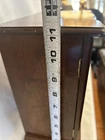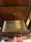 Vintage wooden musical jewelry box. The glass doors have edged flowers on the glass and the music is in working condition. See pictures for description and condition of this vintage wooden jewelry box. No cracks on the wood and has some nicks and scratches as seen on the pictures. Please review pictures for description, condition, and size.