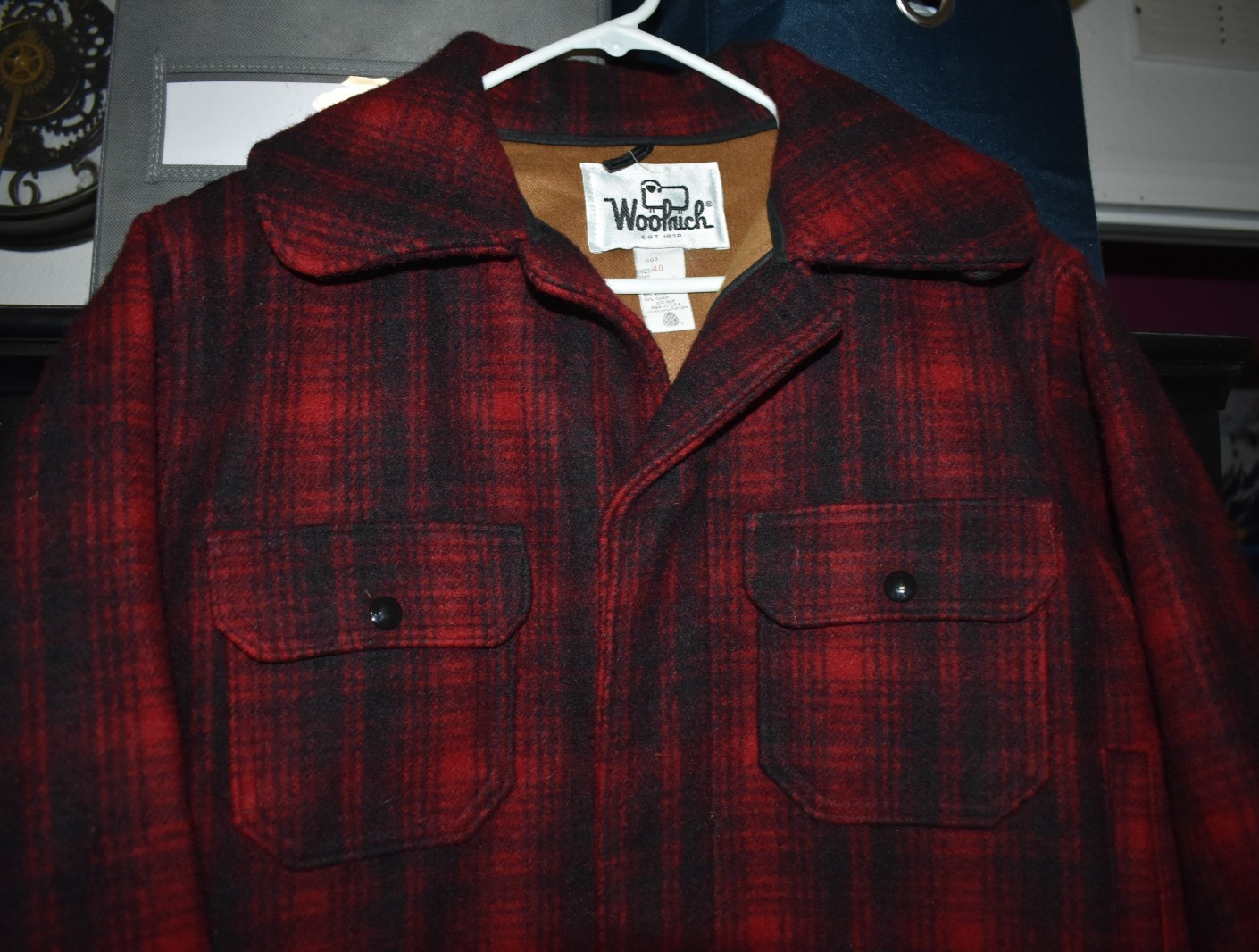 The Vintage Woolrich Mackinaw Jacket Coat is a classic piece of men's outerwear, featuring a warm wool construction with a traditional red and black buffalo plaid pattern. This jacket, model 503, is perfect for casual or workwear occasions, and its vintage charm adds a touch of nostalgia to any outfit. Made in the United States by the renowned brand Woolrich, this hunting-style jacket is insulated with wool and lined with wool as well, providing exceptional warmth and durability for outdoor activities. Perfect for the avid hunter or those looking for a timeless and practical addition to their wardrobe. Coat is size 40, size 40 is approx a size Medium conversion. Coat measures approx. 22'' across chest pit to pit, 30'' from top of shoulder near collar to bottom (short to mid length) , 22'' sleeve length from center sleeve to cuff end. Jacket is in great condition for age, no damages to note, please see pictures for more details and condition, condition and size.