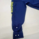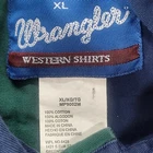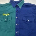 This vintage Wrangler shirt for men is a must-have for any collector or fan of retro western style. The shirt is made of a lightweight cotton blend canvas material and features a button-up collar and long sleeves with embroidery details. The shirt has a split color design and is perfect for any occasion, whether it be travel, party/cocktail, casual, or workwear. The shirt is machine washable and easy to care for, making it a great addition to any wardrobe. It also comes in size XL and has various features such as pockets and a classic fit. The shirt's theme includes rock, american, colorful, grunge, cowboy, classic, rockabilly, retro, logo, hipster, western, 60s, outdoor, 70s, 80s, 90s, Southwestern, and fun.