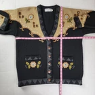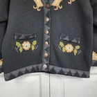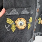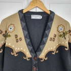 Xpression by deesons Vintage Embroidered Cardigan Button Front Black Grey Beige - Size US 8 / EU 40, approx.measurements in pics - Model 5.6 tall, 142 lbs. - 80% Acrylic , 20% wool - Floral embroidered - Wooden buttons - Made in India - Good vintage pre-owned condition may have some flaws from normal wear Shipping Same or Next Business Day! Thanks for watching! 80s, 90s, vintage, retro,Knitted, Embroidered, grandma, casual, winter, fall, embellished, cozy, warm This vintage Xpressions by Deesons cardigan is a timeless piece that will elevate any outfit. The intricate embroidery adds a touch of elegance to the classic black color, making it perfect for any occasion. The button-front closure adds versatility to the cardigan, allowing it to be worn open or closed. The sweater is a size US 8 / EU 40 and is a regular fit. It is made of high-quality materials, ensuring durability and comfort. This cardigan is a must-have for any fashion-forward woman and will be a great addition to any wardrobe.
