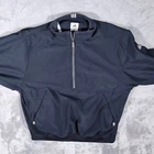 Condition Notes: Fair/good vintage condition. Multiple spots of dark discoloration spread out over front and back of jacket. Moderate wear throughout. See photos. Product Notes • Half-Zip Closure • Embroidered Adidas Logo • Elastic Hem & Cuffs • Side Pockets • Machine Washable • Mesh Lining • Vinted Back Measurements: Pit to Pit: 24 inches Chest: 48 inches Hem to Collar: 26.125 inches Please check photos and measurements carefully. Note the boxy fit and relatively short length.