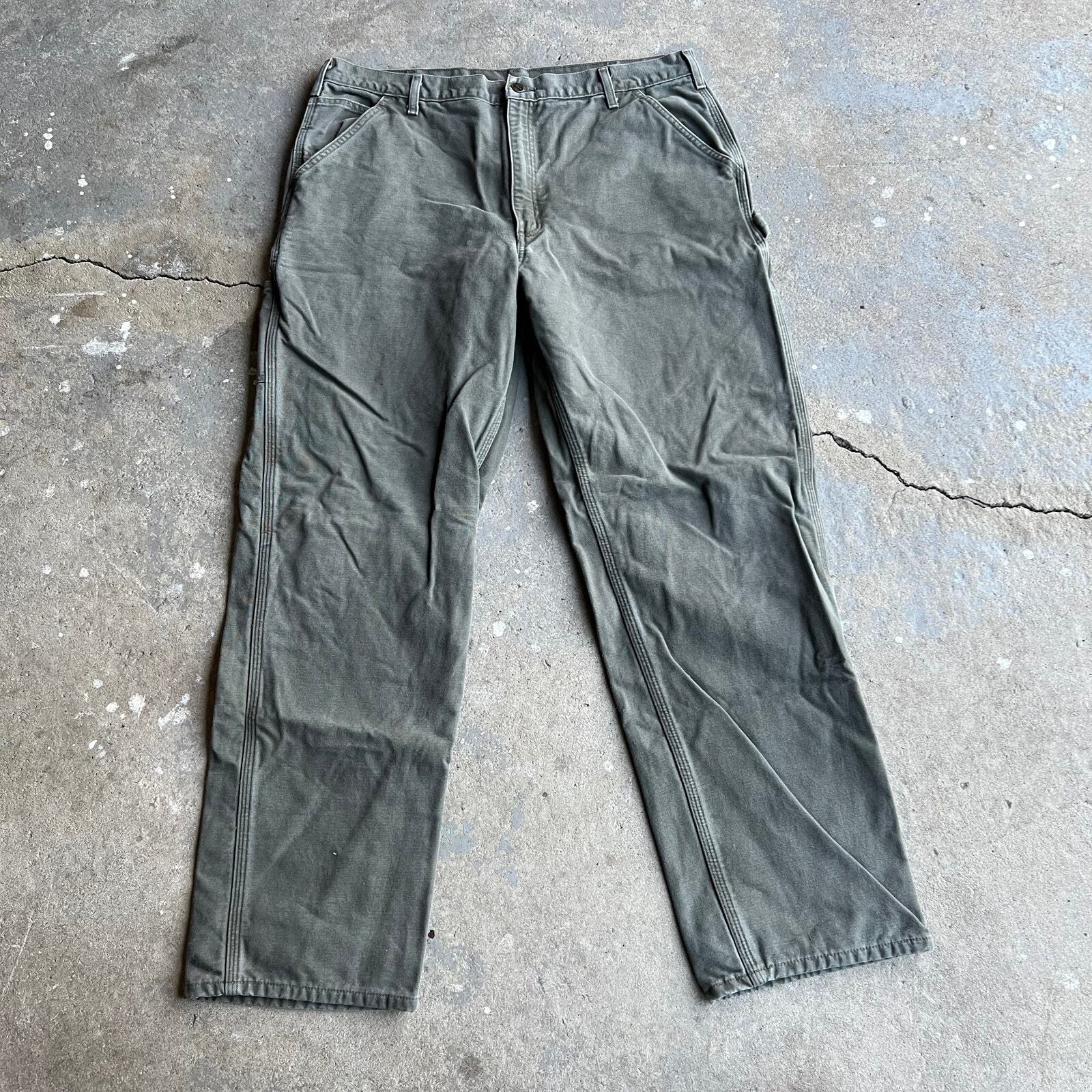 Vintage Y2K Carhartt flannel lined green work wear carpenter pants. Great pair! Nice and warm. Measure 38x33 and a 9.75 leg opening. Please check measurements before purchasing. I do my best to show any flaws in pictures. Quick shipping! Bundles encouraged! @ants_haul on Instagram. 443!!!