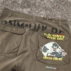 Vintage Y2K JNCO Jeans Baggy Army Cargo Pants Men’s 38x32 Brown LA Unit Skull Preowned Small grease spot on leg, and bottoms at ankle are cut some on the back. Hole starting at crotch bottom, could use patching up. A couple bleach spots on back and front waist. See pictures for overall condition Have some nice army style designs and patches Please see pics and ask questions before purchasing Thanks!
