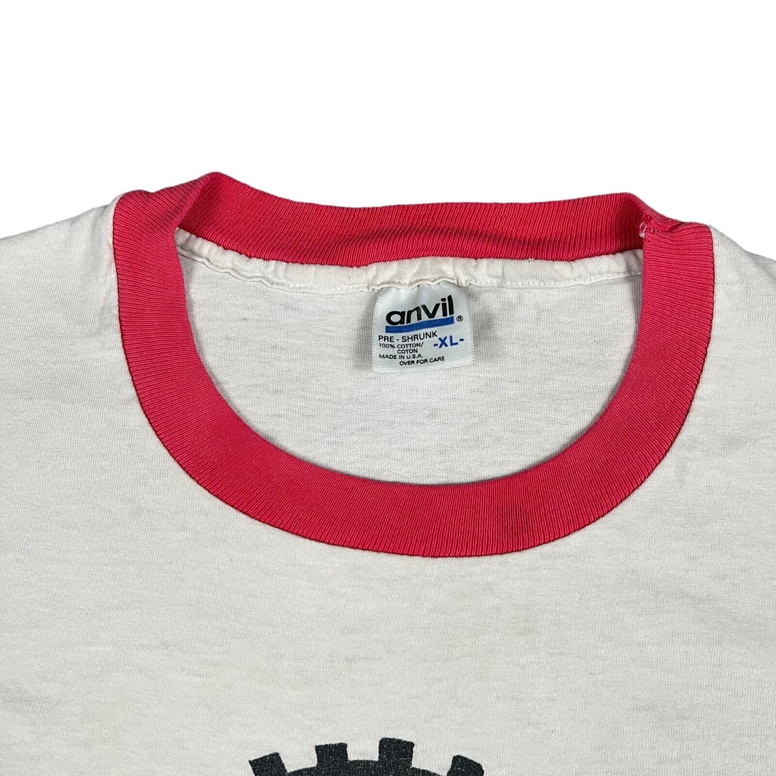 vintage y2k Keith Haring anvil frat sorority ringer graphic t shirt. Good one. Hole on front. Measures 23x30. Please check measurements before purchasing. I do my best to show any flaws in pictures. Quick shipping! Bundles encouraged! @ants_haul on Instagram.
