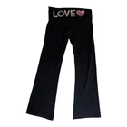 Vintage Y2K Victoria’s Secret PINK Bling “LOVE” Foldover Flare Yoga Pants – Size L Super cute early-2010s VS PINK foldover flare yoga pants with sparkly silver and pink sequin “LOVE 💖” detailing. Classic comfy stretch fit with the iconic Y2K bling. Size: Large Open to reasonable offers happy to discount bundles:)
