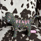 Vintage Y2K Victorias Secret PINK Dog Mascot Floral Wildflower ‘Peace’ 8” Plush In good overall condition. No stains, general wear from age and storage applies. Butt tags intact with plastic tag connector still intact. Rare and hard to find model. Black with wildflower/floral background and pink ‘Peace’ lettering decal. No cracking or fading on decal. Measures about 8” long.