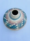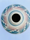 This vintage pottery vessel/vase is a beautiful piece of Native American artwork. Handmade by a skilled artisan, it features intricate hand-painted designs that reflect the rich cultural heritage of the Navajo tribe. The attention to detail and craftsmanship is evident in every aspect of this piece. The pottery vessel/vase is a wonderful addition to any collection of Native American art and is sure to be a conversation piece. Its cultural significance and unique design make it a true treasure. Item is approximately 10” inches in diameter 3.27.24