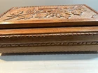 vintage large hand carved Folk Art Wood Box, Leaves , Branches Romania . Box measures 15.5 inches long, 10 inches wide 5 inches tall and 9.5 deep. Not sure of use or origin but beautiful work of art. Very good condition