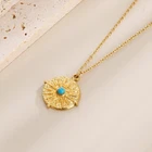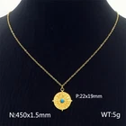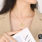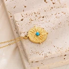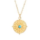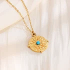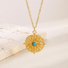 Vintage round pendant necklace titanium steel inlaid turquoise collarbone chain