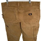 Vintage y2k men's khaki tan Dickies canvas carpenter cargo utility workwear pants Waist: 38" Inseam: 31.5" Hip: 46" Rise: 13" Leg Opening: 9" Tag Size: 38 x 32 Item is in good used condition. Look at photos to see the condition. All, if any, flaws have been pictured. See the last photo for measurements. The waist and hip measurements are measured flat and then multiplied by 2 to get the full measurement around. Please know which measurements fit you prior to purchasing, and don’t just rely on the size tag. Feel free to ask any questions! ***Item is cross posted on several platforms***
