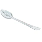 This perforated stainless steel serving spoon is made of heavy duty 18 gauge stainless steel with a deep grooved handle for added strength. The perforations allow liquids to drain from the serving spoon. Model #: 46975 Perforated Handle is deep grooved for strength The Warranty Does Not Apply To Products Purchased For Personal Family Or Household Use "