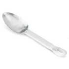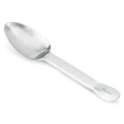 This stainless steel basting spoon is tough enough to handle any busy kitchen thanks to the patented handle with turned down design for extra strength and comfort. Model #: 64400 Solid Spoon Once piece construction is durable and sanitary Patented handle with unique turned down design for unrivaled strength and comfort Satin-finish minimizes wear hides finger prints and offers tough commercial look The Warranty Does Not Apply To Products Purchased For Personal Family Or Household Use "