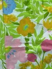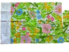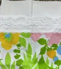 Bright Blue Pink and Green these fashion manor pillowcases were hemmed (common to have to do to pillowcases) with a white lace. They were never used and are crispy.