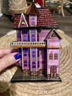 This vintage balsa wood house trinket box features a Victorian style design from Ohio with a rectangular shape and a multicolor finish. Handmade and varnished, this small decorative collectible is perfect for any room and any occasion. The original piece comes unboxed and is sure to add a unique touch to any collection.