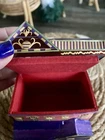 $ 36.35Blue Jeweled Egg Trinket Box Gold Tone Rhinestones Pearl Top