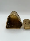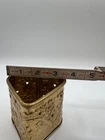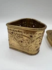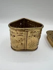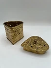 This Vtg Brass Heart Shaped Trinket box with lid is a small, Victorian-style decorative collectible made of antique brass. The heart-shaped box features a press fastening closure and is adorned with a romantic theme of Hearts. It is 3 inches in length, height, and width, and weighs 15 oz. This trinket box is suitable for any room and any occasion, and is a perfect keepsake box for adults who appreciate unique and elegant decor. Made in India in the late 20th century, this original piece is a beautiful addition to any collection.