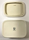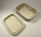 This vintage Celeste Lenox cigarette box doubles as a trinket, sugar, or jewelry box, featuring a rectangular shape with a removable lid adorned with intricate gold leaves and buds on a cream-colored porcelain/ceramic material. The box, part of the Keepsake Boxes collection, exudes a mid-20th-century charm with its glossy finish and gold floral theme. Made in the United States, this original piece from the 1940s-1970s era is a unique and elegant addition to any room, perfect for storing small items or as a decorative collectible.