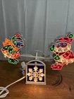 This vintage Christmas figurine features an animated Santa and elf, with a teeter totter design that adds a fun touch to your holiday decor. The holographic details and multicolor construction make it a unique addition to any collection. Measuring 15 inches in length and 12 inches in height, this corded figurine is made of plastic and features lights and motion for an added effect. It was manufactured in 2003 by Toyo for Avon. Perfect for the holiday season, this Animated Santa figurine is a must-have for collectors and fans alike. New open box condition. Has only been out of the box to test it. See photos.