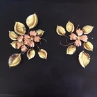This vintage brass and copper wall decor set features a mid-century modern design of dogwood flowers and leaves. The medium-sized pieces are crafted from brass and copper, showcasing a combination of mixed metals that add a touch of elegance to any room. The wall-mounted art by Homco does not require any additional parts and can be easily cleaned with a damp cloth, making it a low-maintenance yet stylish addition to your home decor.