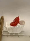 Cute! In good/very good vintage condition, has expected signs of wear(see photos, all sides pictured). Common imperfections in finish. Maybe a couple of tiny nicks or scratches. Some wear on finish. Only given a light cleaning. Has some misc. marks that may or may not come up in deeper cleaning. Glue has yellowed. Did not see any chips or cracks, might be a flea bite or two that was missed. Believe this is from Bradford as different sleigh design than most. Found no Maker's Marks. Might be small things that were missed so please see all photos. Contact if still questions. ****Pictures very much part of condition assessment, please be sure to view all photos.**** All items sold as-is. Packed with great care. For combined shipping price, please purchase and REQUEST invoice for combined shipping and wait before paying. International Shipping only through eBay's International Shipping, so no Combined Shipping and will have additional costs associated. THANKS FOR LOOKING!!