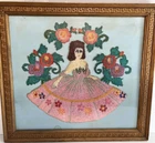 Vintage Punch Needle Art on Satin Greek Key Wood Frame with Glass Woman/Floral Needlework depicts a woman in a ball gown surrounded by floral designs. This measures with frame 21.5" x 24" This weighs 8 lbs. This is a pre-owned item and show signs of wear and age. The satin material on which the needlework is done has some signs of being slightly soiled. Please look at photos. The wood frame has a couple of snags which could be sanded smooth. Sold as is. I would be willing to remove the glass for shipping to decrease cost of shipping and minimize risk of breakage. If you are interested in this option please let me know and I'll provide a way to calculate shipping without glass. As is the listed will calculate shipping with glass. Please look closely at photos for details. My goal is to provide a smooth and seamless shopping experience which will result in you receiving something you will enjoy! If you have any questions or concerns about the item or the transaction, please first message me so that I have an opportunity to correct the issue to the best of my ability which I am more than willing to do. Thank you for shopping with Collectible Kitsch, hope to see you again!