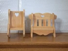 Vtg Wood Dollhouse Baby Swing & Ready to Paint/Stain Large Bench & Rocking Chair Please see all photos for condition. From a smoke and pet free home. I do combine shipping.