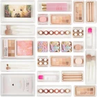 ✔Make Everything Organized -- These clear versatile drawer dividers trays are perfect for any place in your home. Fit all kinds of drawers, such as vanity / bathroom / kitchen / office drawers/ craft room, ideal for organizing cosmetics, makeup tools, hair accessories, jewelry, pins, office supply, craft supplies, utensils, etc. ✔Combination of 4 Different Sizes -- One set includes 25pcs storage bins in 4 different sizes, which help you customize combinations to store items and organize drawer in shelf/ closet/ cabinet/ dresser . Includes: 9 x 6 x 2 inches (3pcs), 9 x 3x 2 inches(6pcs), 6 x 3 x 2 inches(8pcs), 3 x 3 x 2 inches(8cps). ✔Non-Slip and Durable -- Extra 100pcs silicone pads are included, just stick them on the bottom of the plastic trays for non-slip. Made of durable and clear plastic, so you can see what’s in it without digging around or making a mess, help you get a neat lifestyle. ✔Stackable Storage -- The drawer bins can be stacked into one other when you not use them, that will save much space and organize well. You will find it's so easy to keep things neat and tidy. ✔Easy to Clean -- Our desk drawer storage bins are easy to be wiped clean with a damp cloth and perfect for keeping everything in its place. Convenient for use in your daily life, make everything look beautiful and better organized. Product Description Vtopmart 4 sizes drawer organizer trays are perfect for various drawer in kitchen/ bathroom/ bedroom/ vanity and more. 1 Makeup Organizer 2 Bathroom Organizer 3 Office Organizer 4 Kitchen Organizer 5 Tool Organizer Size Info More options for package quantity Add to Cart Add to Cart Add to Cart Add to Cart Add to Cart Add to Cart Add to Cart Customer Reviews 4.7 out of 5 stars 31,141 4.8 out of 5 stars 1,252 4.7 out of 5 stars 1,161 4.8 out of 5 stars 341 4.8 out of 5 stars 466 4.6 out of 5 stars 2,628 4.7 out of 5 stars 1,395 Price $18.49 $ 18 . 49 $24.49 $ 24 . 49 $29.99 $ 29 . 99 $39.99 $ 39 . 99 $40.99 $ 40 . 99 $19.19 $ 19 . 19 $32.99 $ 32 . 99 Quantity for 9 x 6 3 6 6 11 12 3 6 Quantity for 9 x 3 6 10 10 14 20 6 10 Quantity for 6 x 3 8 6 14 23 18 14 18 Quantity for 3 x 3 8 6 14 18 22 14 26 Quantity for silicone pads 100pcs 150pcs 200pcs 300pcs 350pcs 200pcs 250pcs More options for package quantity Add to Cart Add to Cart Add to Cart Add to Cart Add to Cart Customer Reviews 4.8 out of 5 stars 214 4.7 out of 5 stars 11 4.8 out of 5 stars 156 4.8 out of 5 stars 310 4.5 out of 5 stars 129 4.7 out of 5 stars 1,796 Price $17.99 $ 17 . 99 — $15.99 $ 15 . 99 $15.99 $ 15 . 99 $10.99 $ 10 . 99 $15.99 $ 15 . 99 Quantity for 9 x 6 1 PCS 9.9 x 6.3 1 PCS 9.9 x 6.3 3 3 1 1 Quantity for 9 x 3 2 PCS 9.9 x 3.2 2 PCS 9.9 x 3.2 2 1 2 2 Quantity for 6 x 3 2 PCS 6.3 x 3.2 2 PCS 6.3 x 3.2 2 3 4 6 Quantity for 3 x 3 2 PCS 3.3 x 3.2 2 PCS 3.3 x 3.2 2 3 4 6 Quantity for silicone pads 50pcs 50pcs 50pcs 50pcs 50pcs 100pcs Is the drawer organizer fully square that is straight 90 degree sides? These drawer bins are wider at the top and narrower at the bottom, please carefully check the size in detail page. Drawer organizers are widely used in different size drawer in bathroom, vanity, dresser, office, keeping your home well organized. Are these drawer bins BPA free? Yes, these drawer organizers are made of plastic, and all material are BPA free Are there 6*6 drawer organizers in this set? No, there are 4 different sizes in this package: 9*6/ 9*3/ 6*3/ 3*3. And now we have developed more options for sizes and package quantity, like 15*6/ 12*6/ 6*6. You could DIY the combination with different sizes. Please visit our store to choose.
