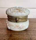 WAVECREST- Antique Victorian Dresser Box-Hand Painted with Original Silk Lining-Signed Absolutely beautiful condition! 3.5" round x 2 3/8" tall...signed on bottom