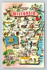 WI-Wisconsin, Scenic Map Greetings, Landmarks, Vintage Postcard
