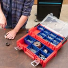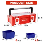 WORKPRO 17-inch Plastic Tool Box, Red Storage Box with Locking Lid and Stainless Steel Handle, 18 Adjustable Compartments for Sockets, Crafts and Power Tools, Great Father Day Gifts Product Details Brand: WORKPRO Material: Stainless Steel, Plastic Color: Red Product Dimensions: 17"L x 5"W x 9"H Water Resistance Level: Water Repellent Brand: WORKPRO Material: Stainless Steel, Plastic Color: Red Product Dimensions: 17"L x 5"W x 9"H Water Resistance Level: Water Repellent Maximum Weight Recommendation: 80 Kilograms Number of Compartments: 18 UPC: 820909758877 Global Trade Identification Number: 77 Manufacturer: HANGZHOU GREATSTAR INDUSTRIAL CO.,LTD Item Weight: 5.66 pounds Item Package Quantity: 1 Batteries Included?: No Batteries Required?: No Date First Available: November 20, 2019 Movable Box with Lid: The tool box contains 18 movable compartments with a transparent cover. All compartments are easily put in and out to customize the storage case. The transparent lid allows you to see everything at a glance Metal Lock Catch & Handle: The Lock catch is solid and firm to provide safety, while the widened handle provides convenient and portability Sliding Layer with Support: The special sliding design provides as much access space as possible. It is more convenient to select parts Durable Material with Stiffener: The box is made of PP material with a widened stainless steel handle. The stiffener structure ensures the throw resistance and load-bearing Dimensions & Function: The tool box dimensions: 17" x 9-1/2" x 5-5/8". It is perfect for sockets, bits and other accessories storage