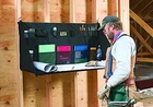 WS3800 Portable Standing Desk, Workbench, Station, Storage for Jobsite, Garage, Office, , Hanging Work Surface, Black Portable workstation: create your own heavy-duty desk anywhere and stay organized while maintaining maximum flexibility. This item easily folds and stores away to save space. US patent # 7, 421, 958. Standing desk: heavy duty, effective, affordable standing desk for the construction site, garage, Office, home or practically anywhere! requires 2 pieces of 1/2" plywood at 24"x48". Heavy duty functionality: with over 20 pockets and room enough for blueprints and other essentials, the 48 inch width helps you get the job done! Strong and reliable: made from strong nylon fabric and heavy duty rings ready to support you and your work anywhere!