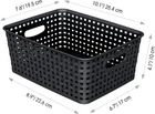 6 pack black plastic organizer basket, weave wicker storage organizer basket, perfect to service for kitchen/ bathroom/ classroom and so on, outside dimensions: 10" length x 7.5" width x 4" height Simplify plastic storage baskets are hassle-free stack able when not in use for maximum space utilization, and its combined tote allow you to move them with ease. Take it wherever you need storage. For convenient storage basket that are built with the sturdiness to give you years of service . The basket durable translucent plastic body with wicker design are built to last from premium grade materials The polypropylene plastic wicker storage basket are great for clothing, linens, bath and beauty products, magazines, etc. Versatile design and features to organize any space in your home, dorm room or office We adhere to the best product delivery and the most uncompromising quality. The trust placed by our discerning customers earned over the years. Fulfillment of our customer's need are core of our vision.