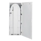 Description Not only does a traditional iron or ironing board cost you more money but trying to install it in your room will take up a lot of space. You can try this beautiful and practical ironing board cabinet. It has a minimalist design, a foldable ironing board, a large storage space, and high quality, which easily blends into different interior styles and is suitable for use in various scenarios such as homes, hotels, and apartments. Key Features Large Capacity: 4 spacious storage shelves and 2 hanging hooks can accommodate most accessories and small irons, as well as provide a convenient space for hanging clothes, keeping your room clean and tidy. Selected Materials: High-quality MDF, iron ironing board, and nickel-plated hooks make this cabinet sturdy, corrosion-resistant, Wall Mount Organizer Ironing Board Cabinet with Storages + Mirror Hide Away Description Not only does a traditional iron or ironing board cost you more money but trying to install it in your room will take up a lot of space. You can try this beautiful and practical ironing board cabinet. It has a minimalist design, a foldable ironing board, a large storage space, and high quality, which easily blends into different interior styles and is suitable for use in various scenarios such as homes, hotels, and apartments. Key Features Large Capacity : 4 spacious storage shelves and 2 hanging hooks can accommodate most accessories and small irons, as well as provide a convenient space for hanging clothes, keeping your room clean and tidy. Selected Materials : High-quality MDF, iron ironing board, and nickel-plated hooks make this cabinet sturdy, corrosion-resistant, and anti-rust. Multifunctional Cabinet: Not only is it a hanging ironing cabinet, but it can also be used as a dressing cabinet, making it easy to see the effect of wearing clothes directly, saving your time and costs. Sturdy Structure : The triangle bracket at the bottom of the cabinet ensures the cabinet is attached to the wall stable. The widened support leg and triangular support design under the ironing board improves its load-bearing capacity. Exquisite Workmanship: With cutting, grooving, punching, nailing, gluing, CNC machining, spray painting, baking varnish, and other processes, this product is strong and not easy to deform. Powerful Protective Cloth Cover: The anti-ironing protective cloth cover made of foam liner and breathable cotton is resistant to high temperature, has a good heat dissipation effect, promotes faster wrinkle release, provides a smooth ironing effect. Space-saving: With the foldable ironing board hidden in the cabinet and wall-mounted installation design, this ironing board cabinet saves space, which is ideal for ironing in small spaces. Modern and Simple: Delicate white wall-mounted cabinet body and the premium glass mirror can adapt to any type of room and create the visual effect of a wider space. Simple&Flexible Installation : With the fully-assembled ironing board cabinet, pre-drilled hanging holes, complete hardware, and a detailed installation manual, you simply measure the distance on the wall, drill two holes, and mount it vertically on the wall. Easy to Clean : With the smooth surface with spray painting treatment and detachable cloth cover, you only need to wipe it with a wet cloth and clean the cover with a washer/dryer. Easy to Use: Simply open the lock latches, lower the board, fix the support leg, and then you can start ironing, which is easy and ideal for quick ironing before work and school. Protective Package: To prevent the product from being damaged and bumped during transportation, we packed it with foam to protect your products to the maximum extent possible. Details Recessed Handle: The recessed handle on the edge of the door has an ergonomic size and a comfortable grip, allows for easy opening&closing, saves space, and ensures a smooth&attractive facade of the door when it is closed. Lock Latch : The lock latches keep the ironing board and support leg secure when not in use without falling and improve user safety when you open the door. Sturdy Hinges : These sturdy hinges keep your cabinet door balanced without tilting and allow for easy opening and closing without jamming Application It is used for ironing your clothes and storing folded clothes, bags, accessories, shoes, books, toys, and other small items in bedrooms, checkrooms, small houses, sewing rooms, bedrooms, small laundry rooms, pantry rooms, studio/tight apartments, RVs, and many other occasions. How to Use Install the wall-mounted cabinet according to the assembly instruction. Open the cabinet and fold down the ironing board. Plug in your iron or garment steamer into a nearby outlet and let it heat up. Iron or steam your garment as desired. Place your garment and hang your clothes on the hanging hook with a hanger to set. Specification Color: White Material: MDF, Glass, Iron Process: Cutting, Grooving, Punching, Nailing, Gluing, CNC Machining, Spray Painting, etc. Shape: Rectangular Style: Modern, Minimalist Door Style: Flat Panel Assembly Required: No Mounting Type: Door/Wall Mount Plate Thickness: 12mm/0.5inch Support Leg Length: 81cm/31.89inch Mirror Size(L*H): 25.4*85cm/10*33.46inch Ironing Board Length: 89cm/35inch Overall Size: 35.5*17.5*95cm/14*6.89*37.4inch Package Size: 106*43.5*25cm/41.7*17.12*9.84inch Gross Weight: 15.2kg/33.5 lbs Net Weight: 13.45kg/29.6 lbs Package Included 1* Ironing Board Cabinet 1* English Assembly Instruction All Accessories for Assembly Notes Please ensure a proper installation space without power lines or water pipes on your desired wall. When installing, please pay attention to the height limitation of 31.89". Please avoid contact with water and direct sunlight. Please do not use detergent or chemicals. Please read the operating manual completely before use. And pay particular attention to the safety instructions included. Please allow the slight color difference caused by the shooting light and 1-3cm error 