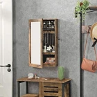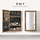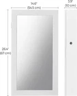 Product Description Earring Storage Keep your earrings and studs in pairs and in order for you to fetch them easily. Sturdy and Durable This jewelry cabinet crafted with MDF will serve your beauty routine for years. Lockable The lockable cabinet with two keys allows you to store your accessories safely. Installation Holes They help you easily hang the jewelry cabinet with mirror on the wall. A Must-Have for Your Beauty Routine: Before work or a fun night out, isn't it great to have a place where you can get ready? Stylish and practical, this SONGMICS jewelry armoire is perfect for you! Small Jewelry Cabinet for Flexibility: With the size of 3.9''D x 14.6''W x 26.4''H, the small jewelry cabinet takes up a little space. It can be mounted anywhere in your home, hallway, bathroom, and bedroom, etc. Organize Your Jewelry in One Place: Open the mirrored door to reveal a spacious area for your gems and jewels. Clear partition enables you to see your frequently used items at a glance, making daily dressing up a quick process. Specifications: Color: White Material: MDF (Medium Density Fiberboard), Glass Mirror, Velvet Lining Product Size: 3.9''D x 14.6''W x 26.4''H (10 x 37 x 67 cm) Product Weight: 11.5 lb (5.2 kg)