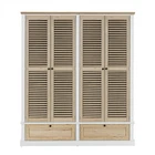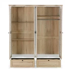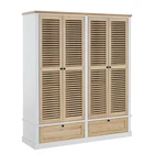 Specification Product Information Product Type:Combo Item Product Name:4 Shutter Door Wardrobe Armoire Closet with 2 Drawers, Natural+White Main Color:Natural+White Main Material:Solid Wood+MDF Product Dimensions Assembled Length (in.):63.00 Assembled Width (in.):19.70 Assembled Height (in.):74.80 Weight (lbs.):244.50 Package Size Package Quantity: 1 68.11 * 23.43 * 4.92 in. 98.11 lbs. Package Quantity: 2 65.55 * 22.24 * 6.3 in. 90.39 lbs. Package Quantity: 3 36.02 * 21.85 * 6.69 in. 67.24 lbs. Product Features [Storage Shelves] The wardrobe features 4 storage shelves can store your essentials. Your bedding, clothes or toys can all be properly placed. [2 Drawers] There are 2 large drawers at the bottom of the wardrobe. Your underwear, socks, towels and other small items can be neatly arranged in them. [Ample Hanging Space] The hanging rail can fit plenty of clothes on it meaning you can organize your clothes, hang your favourite shirts and dresses and keep them crease free. [Classic & Fashion] The classic shutter door design enriches this large armoire wardrobe closet, making your room really elegant and fashion. The stream-lined structure perfectly suits most of your living space and the flexible storage just shows functionality. Description 4 Shutter Door Wardrobe Armoire Closet with 2 Drawers, Natural+White This armoire is a versatile storage solution for your bedroom or guest room. Natural & white finish make this wardrobe classic and fashion, which will fit most room style. 4 storage shelves, 2 drawers and a big hanging space provides ample space to store clothes, blankets, and bags. Description&Dimensions Material Pine Wood+MDF Color Natural+White Numbers of Package 3 Spring Box No need Assembly Required Yes Overall Product Dimension 63''L x 19.7''W x 74.8''H Overall Product Weight 244.5lbs Shelf Weight Capacity 66lbs Rack Weight Capacity 44lbs