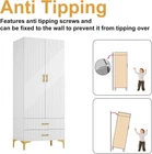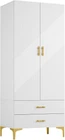 Color White Brand vinform Size 20.4" D x 31.5" W x 76.77" H Item dimensions L x W x H 20.4 x 31.5 x 76.77 inches Product Care Instructions Wipe with Dry Cloth Item Weight 280 Pounds Style Left Modern Assembly Required Yes Shape Rectangular About this item LIGHT LUXURY STYLE: This wardrobe features a white body with gold handles and legs, showcasing a fashionable and luxurious atmosphere. The surface of the wardrobe adopts a unique twill design, reflecting an elegant texture effect. It can add noble and elegant home decoration. SUFFICIENT STORAGE SPACE: Our 2-door white wardrobe closet is 76.77 inches high and can provide sufficient storage space. The full-length clothes hanger is very suitable for storing long and wrinkle prone clothes, such as dresses, coats and suits. The 2 large drawers can be used to tidy underwear or trinkets, and the compartment can be used to stack clothes or place sundries. This wardrobe allows you to effectively manage clothing and household items. HIGH QUALITY: The wardrobe is mainly made of thick MDF board, which ensures stability and durability. The heightened base support can hold the entire weight effortlessly. Smooth veneer surface makes it easy to clean and dry out, which also prolongs service life. 2-PERSON ASSEMBLY: To ensure stability, this item is divided into a large number of pieces. Please follow the instructions step by step with all your caution. Every piece is labeled and all hardware are included with instructions. Overall Dimension: 31.5”(W) x 20.4”(D) x 76.77”(H). Please check the size image from the description if you’d like to know the size of the inner space. CUSTOMER SERVICE: Provide installation guidance for all products. If you have any problems or questions with our products, please feel free to contact us, we will support the prompt service to resolve the issue.