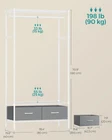 About this item 【ROOMY YET COMPACT】Equipped with 1 hanging rail, 2 storage shelves, 2 large drawers, and 8 hooks, this garment rack provides ample storage for everything from clothing to accessories, while optimizing space usage 【STURDY, STABLE, SECURE】Crafted from robust, reinforced steel, this portable clothes rack is built to last. Adjustable feet help maintain balance even on slightly uneven floors. An anti-tip kit is included to secure it to the wall for added safety 【TAILOR YOUR STORAGE】With the ability to adjust the shelves and rails up and down in 1" increments, this portable closet rack meets diverse storage needs 【EASY TO ASSEMBLE】No screws are involved! Thanks to the cone sleeve locking design, labeled parts, and clear instructions, you can set up this closet rack in no time 【EASY MAINTENANCE】With a chrome-plated finish, this clothing rack is resistant to water and rust, facilitating effortless cleaning and care