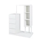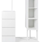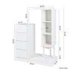 Specification Product Information Item Code:W331P235143 Product Type:General Item Product Name:Wardrobe with Hanging Rack & Shelves, 4 Drawers Wardrobe with Storage Shelves for Bedroom, Wardrobe Closet Organizer for Hanging Clothing with Drawers and Shelves, White Main Color:White Main Material:Particle Board+MDF Product Dimensions Assembled Length (in.):39.37 Assembled Width (in.):15.75 Assembled Height (in.):51.97 Weight (lbs.):85.98 Package Size Length (in.):53.94 Width (in.):20.08 Height (in.):8.86 Weight (lbs.):90.39 Product Features Wardrobe with Clothes Rack: This multifunctional dresser comes with 4 drawers, 3 tiers of storage shelves and clothing rack. Spacious Storage Space: Featuring generous drawers and additional cabinets, this wardrobe provides ample space for all your belongings, from clothes to shoes. Keep your clothes and accessories tidy with three open storage compartments, perfect for displaying or storing essentials. Wide Versatility Clothe Rack: The elegant, simple, and modern design can perfectly complement other furniture and home decor, suitable for living rooms, bedrooms, hallways, or dressing rooms, and various other spaces. Material:Material is 15mm particle bpard,back board is 3mm MDF.Made of wooden structure with melamine finish for durability and easy maintenance. Aufgrund des Lichts oder der Anzeige kann die Farbe des tatsächlichen Produkts geringfügig vom Bild abweichen. Description Wardrobe with Clothes Rack: This multifunctional dresser comes with 4 drawers, 3 tiers of storage shelves and clothing rack. Spacious Storage Space: Featuring generous drawers and additional cabinets, this wardrobe provides ample space for all your belongings, from clothes to shoes. Keep your clothes and accessories tidy with three open storage compartments, perfect for displaying or storing essentials. Wide Versatility Clothe Rack: The elegant, simple, and modern design can perfectly complement other furniture and home decor, suitable for living rooms, bedrooms, hallways, or dressing rooms, and various other spaces. Material:Material is 15mm particle bpard,back board is 3mm MDF.Made of wooden structure with melamine finish for durability and easy maintenance. Aufgrund des Lichts oder der Anzeige kann die Farbe des tatsächlichen Produkts geringfügig vom Bild abweichen.