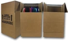 Wardrobe moving box (3-pack), each with metal cross-bar for hanging clothing; ideal for packing and moving shirts, pants, jackets, kids clothing, and more Sturdy corrugated cardboard construction Easy set up; boxes ship flat Product Dimensions: 20 x 20 x 34 inches (LxWxH, assembled)