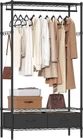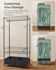 【ROOMY YET COMPACT】Equipped with 1 hanging rail, 2 storage shelves, 2 large drawers, and 8 hooks, this garment rack provides ample storage for everything from clothing to accessories, while optimizing space usage 【STURDY, STABLE, SECURE】Crafted from robust, reinforced steel, this portable clothes rack is built to last. Adjustable feet help maintain balance even on slightly uneven floors. An anti-tip kit is included to secure it to the wall for added safety 【TAILOR YOUR STORAGE】With the ability to adjust the shelves and rails up and down in 1" increments, this portable closet rack meets diverse storage needs 【EASY TO ASSEMBLE】No screws are involved! Thanks to the cone sleeve locking design, labeled parts, and clear instructions, you can set up this closet rack in no time 【EASY MAINTENANCE】With a chrome-plated finish, this clothing rack is resistant to water and rust, facilitating effortless cleaning and care