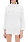 Designed in a shirt style, this snap-up denim overshirt from Wardrobe.NYC features a boxy silhouette enriched by two chest pockets. The model is 177 cm tall and wears a size S. Material: 100%CO Size Info: STANDARD Color: White Brand Code: W4046PC Season: 2024 Condition: Authentic, Brand New
