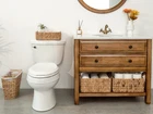 Specification: Set of 3. Large: 14.75 x 10.50 x 6.75 inches, 1 Pack; Medium: 13 x 6.25 x 4.75 inches, 2 Pack. Thickened built-in handles for easy carry. Large basket suitable for storing clothes, blankets, and towels under the sink. Medium baskets ideal for organizing the toilet or kitchen counter, toilet tank top, closet drawer, and others. Made of natural water hyacinth woven over an iron frame. Eco-friendly and hazard-free. Size may vary within 1/4 inch due to handwoven design.