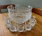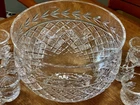 Waterford crystal Glandore punch bowl set is a stunning addition to any glassware collection. The set includes a 12-inch footed punch bowl and 12 cups, all featuring the intricate Glandore pattern. The clear crystal material and round shape make this set a perfect choice for any occasion. The set is an original Waterford product, handmade in Ireland, and features a printed backstamp. The set is perfect for serving punch and other beverages, and is sure to impress your guests. No chips, cracks or repairs