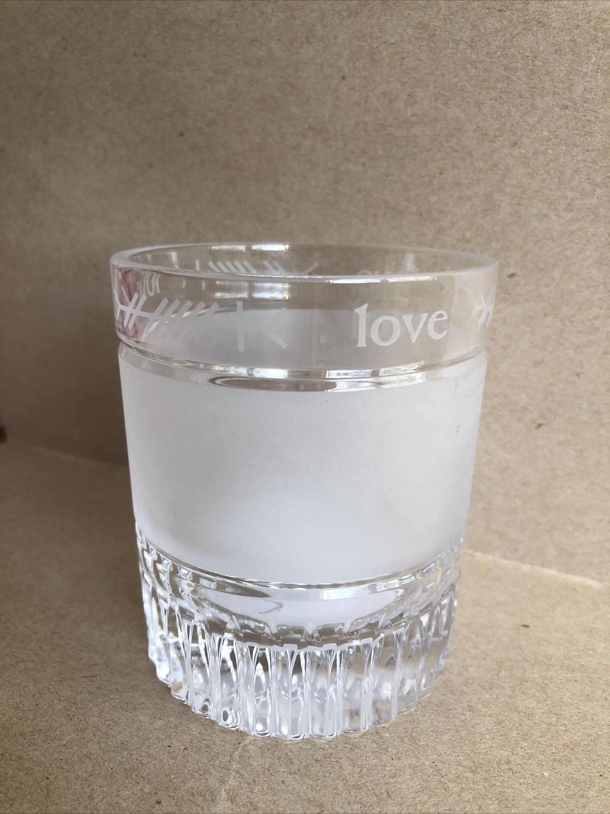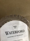 Add a touch of holiday cheer to your home decor with this beautiful Waterford crystal candle holder. Perfect for any season, this round, medium-sized piece features a LOVE holiday theme etched into the clear glass. The item stands at 4 inches tall with a width of 3.25 inches and weighs 1 lb. 1.4 oz. Made from high-quality materials, this decorative piece will enhance any room it is placed in. Ideal for use as a centerpiece or accent decoration. Candle holder only, no candle included. See photos.