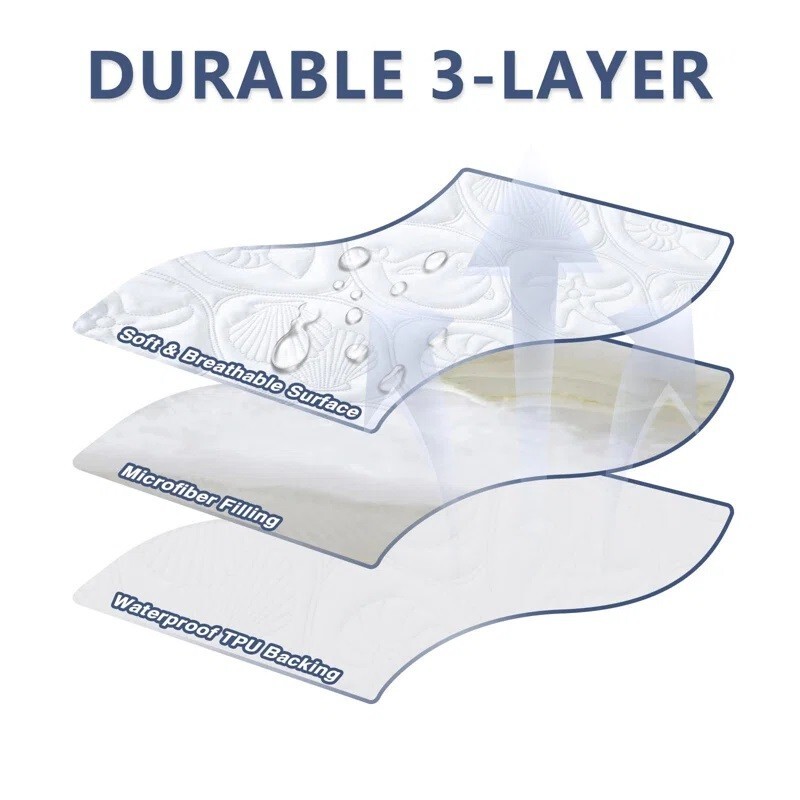 Waterproof Mattress Protector Quilted Fitted Mattress Cover 18" Deep Pocket Specifications: Material: Top Fabric:Polyester coating TPU+ Quilting Cotton Skirt Fabric:100% Polyester Color: White Size: Twin 39x75x18in Full 54x75x18in Queen 60x80x18in King 76x80x18in Package Includes: 1pc Mattress Protector (No other things) Features: The mattress cover is made of high quality microfiber for extra softness and breathability. TPU waterproof layer effectively prevents sweat, body fluids, urine, and other accidental spills. 360° Elastic band design, fits mattresses up to 18in deep, keeping mattress stay in place and not slide off. Suitable for people with children, toddlers or pets. Protect the top of the mattress from liquids and stains. Machine washable, tumble dry on low, do not iron, do not dry clean, do not bleach. Note: Please allow a 1-3 cm difference due to manual measurement. Due to the different displays and different lights, the picture may not show the actual color of the item.